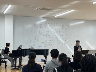 また、「一宮住民福祉まつり」がふるさとセンター駐車場で開催され、本校吹奏楽部がオープニングを飾りました。少ない人数ながら、あたたかい演奏に会場からも大きな拍手が送られました👏その後、生徒たちは学校へ戻り集会室へ。今回の演奏をもって3年生が引退となり、引退コンサートが開かれました。ご参加いただいた保護者のみなさま、ありがとうございました。