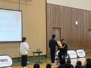 神保さんのダイナミックなプレイや車いすバスケットボールのスピード感に圧倒されました💦生徒代表、PTA代表による車いすバスケットボールのミニゲームもおおいに盛り上がりました🙌