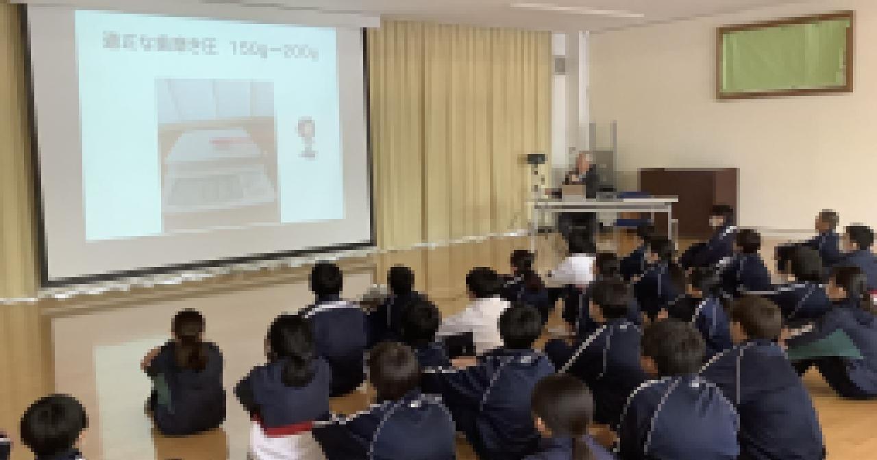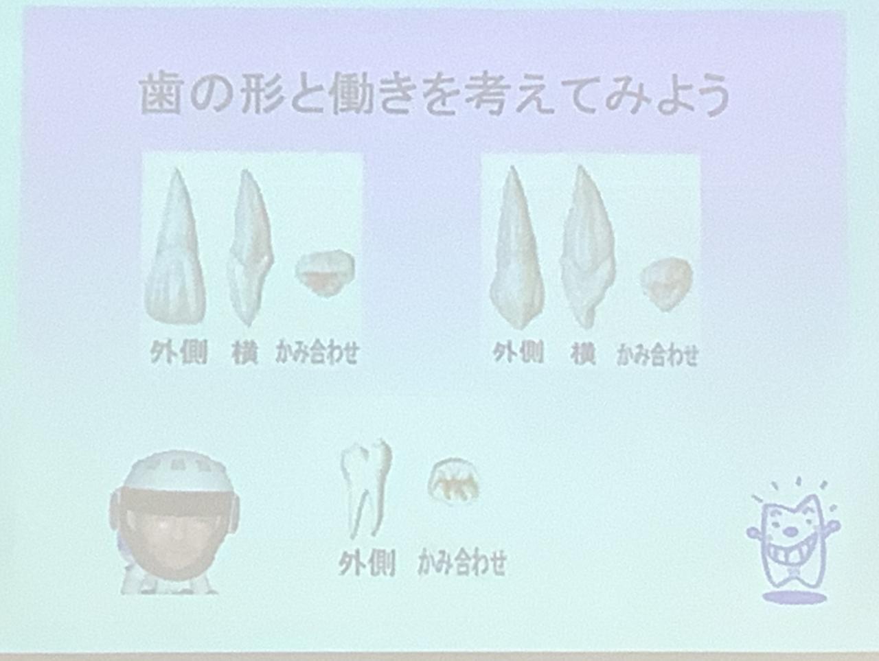 12月9日(火)の5時間目は、1年生が歯科学校医の先生から、歯の健康についてのお話をしていただきました。