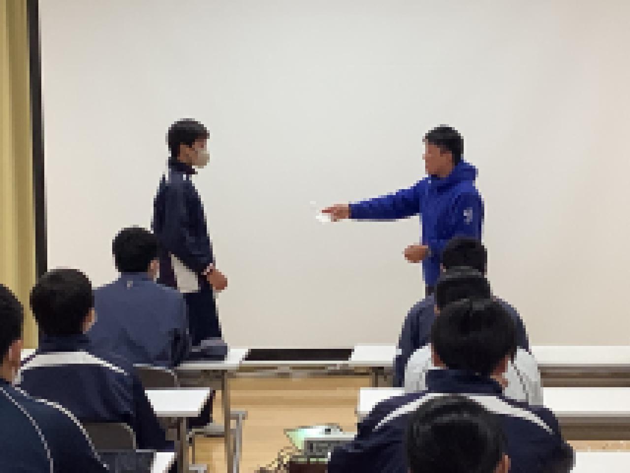 12月8日(月)の6時間目、一宮中学校の学校薬剤師の方より3年生に向けて、薬物乱用防止についての講話がありました。