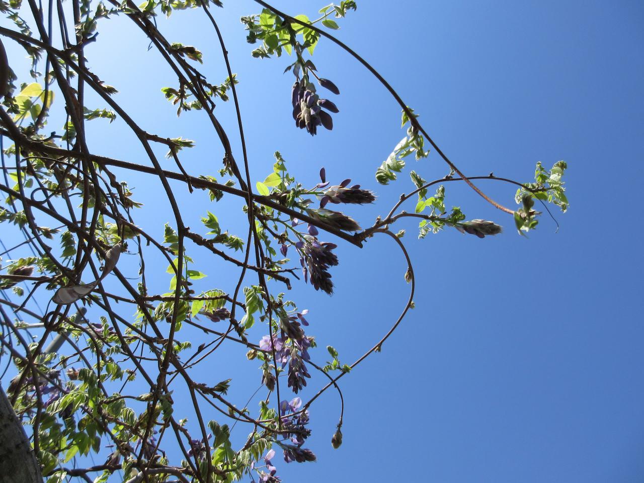 いまから1ヵ月くらいで 伸びて見事な藤の花が 咲くよ