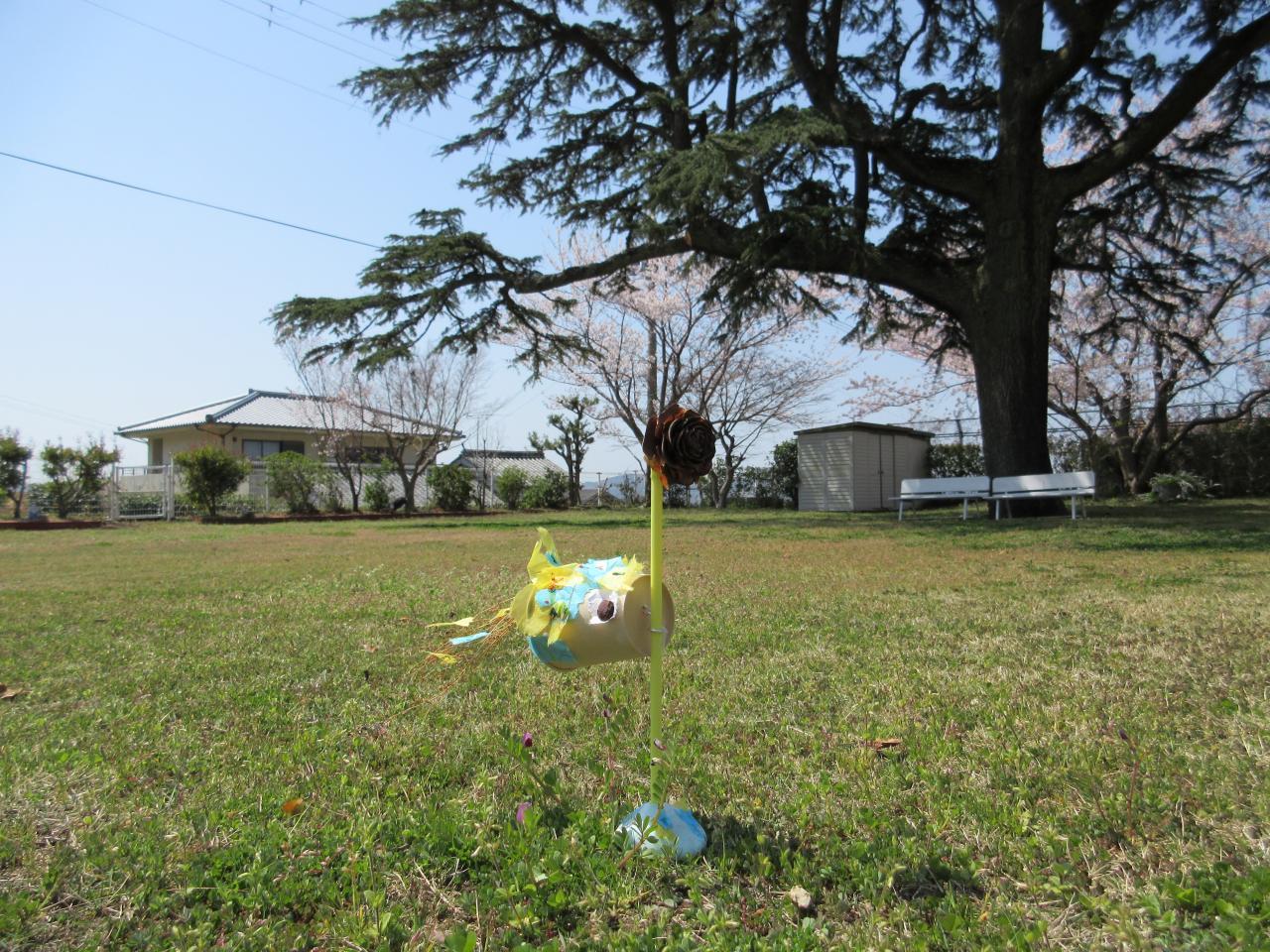 園庭のシダーローズや枝、藤の種など自然の材料で作ります