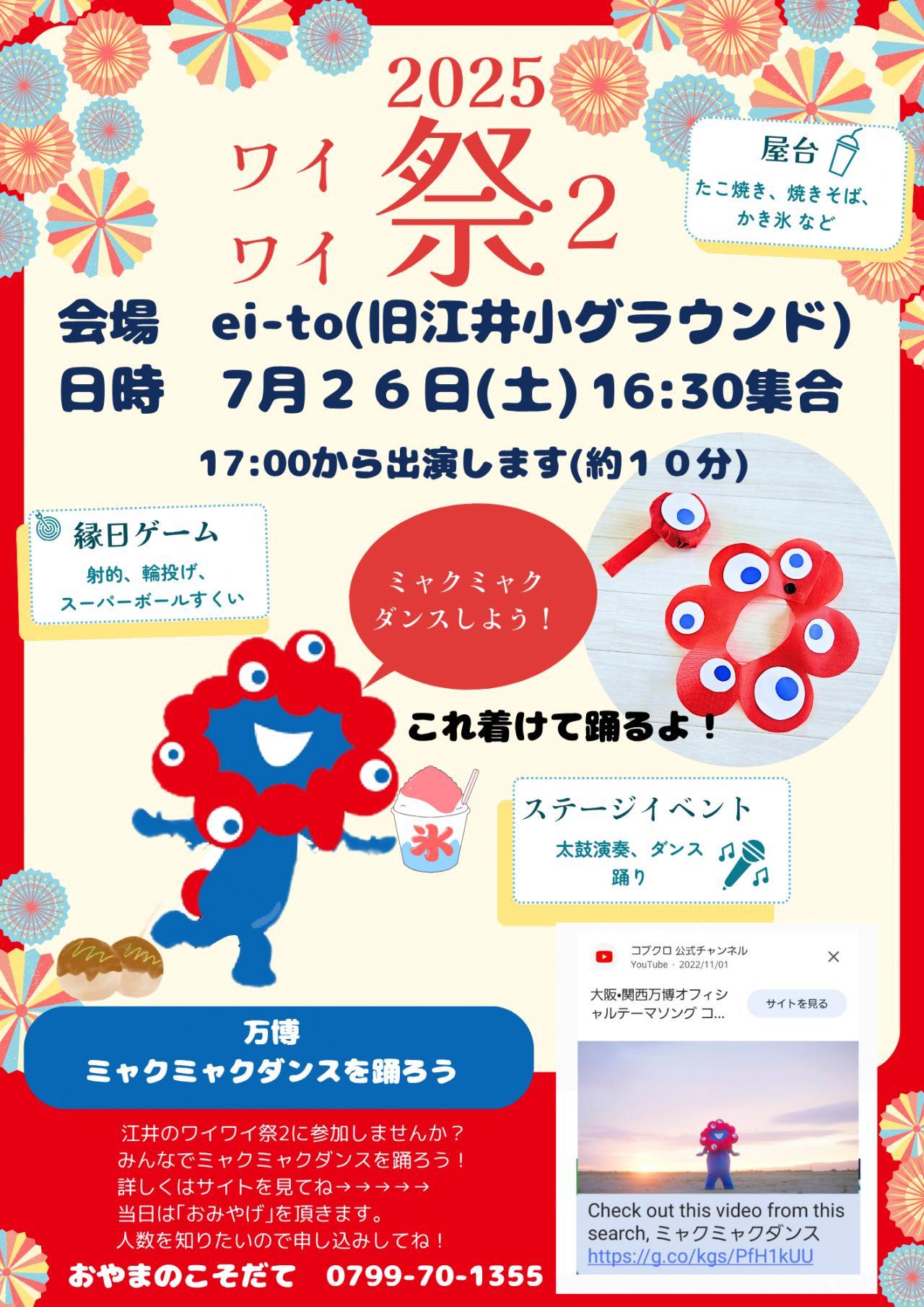 😀7月26日(土) ワイワイ祭が ei-to エイト (旧江井小学校)であるよ🙂